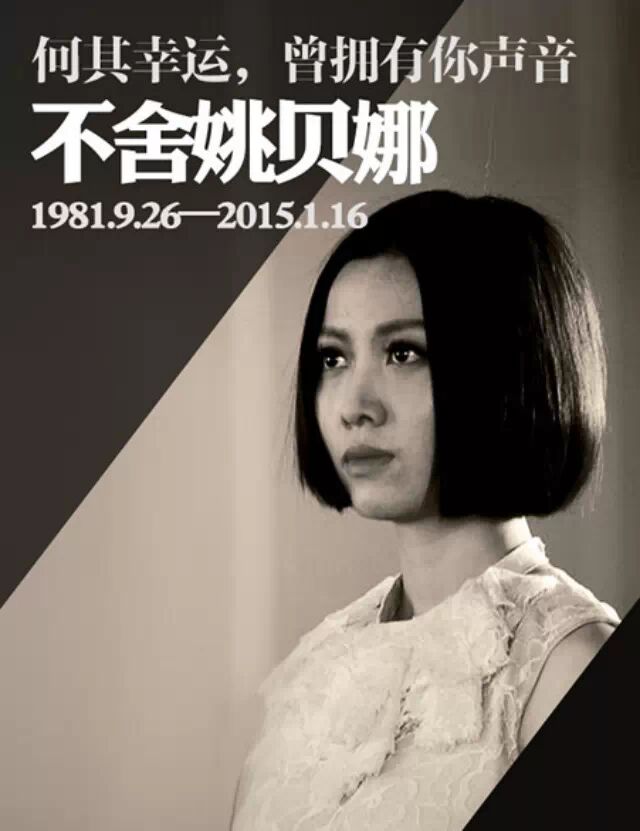 2015年1月16日下午,著名青年歌手姚贝娜因乳腺癌复发救治无效,病逝于北京大学深圳医院。