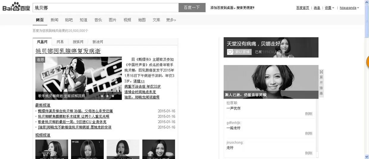 百度-搜索”姚贝娜“页面即变成黑色