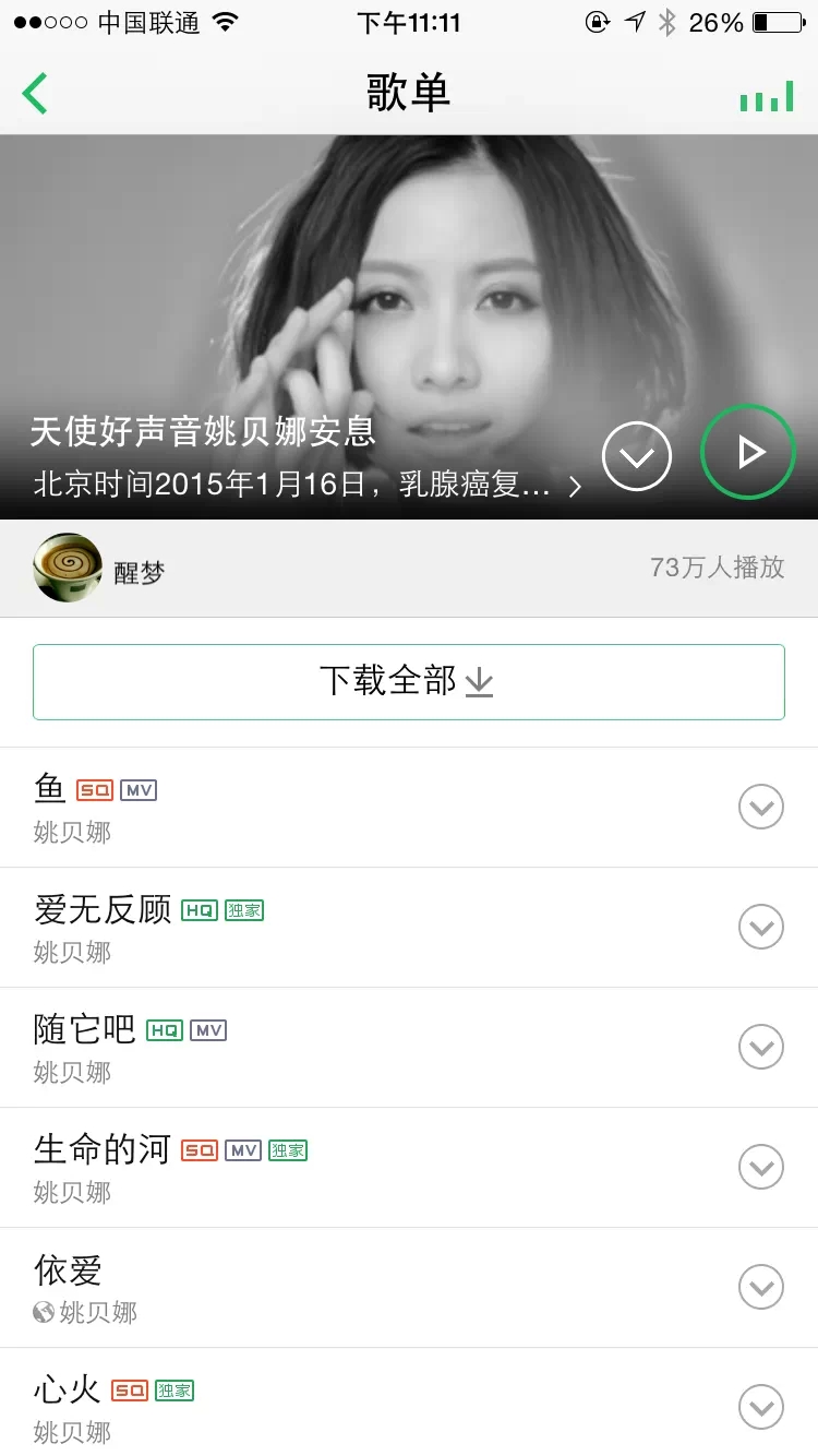 QQ音乐-姚贝娜歌单