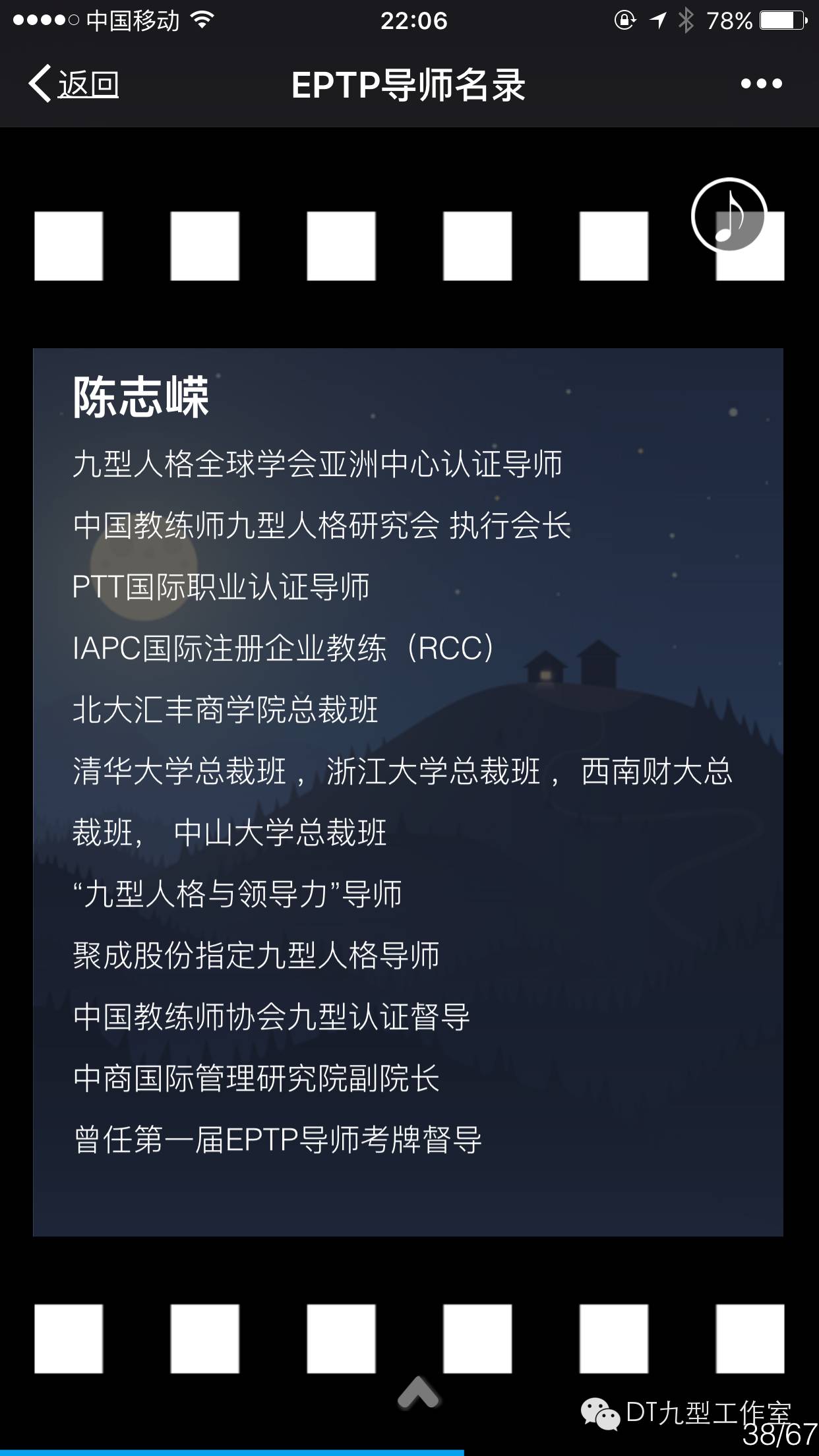 ?他曾获EPTP九型人格认证,PTT国际职业认证,IAPC 国际注册企业教练(RCC)。同时也是北大汇丰商学院总裁班,清华大学总裁班、浙江大学总裁班、西南财大总裁班、中山大学总裁班“九型人格与领导力”导师,聚成股份指定九型人格导师(2006年起)。