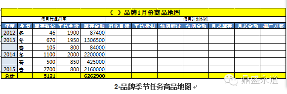 2、柜组品牌目标:细化到每个品类每个品牌每个季节的销售数量目标;