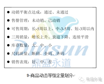 销售部门会用经验和顾客反馈决定一个SKU是否会在下个月能够为品类带来高业绩,她们会用好、中、差来评价一个SKU的市场适应度,一般按照9D模型的九个维度给一款鞋打分,平均分3分为表现中,3分以上表现好,3分以下表现差。