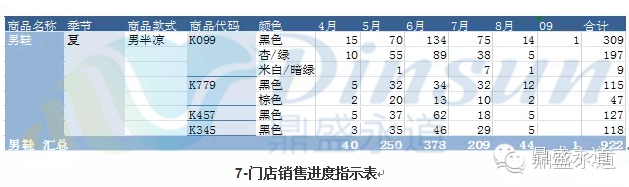 男半凉:2015年的4、5二个月总销售量增长300对,6月增长400对,7、8月增长200双,9月开始本季货品下架停止销售,重点在杏/绿和棕色,建议采购部门明确采购重心。