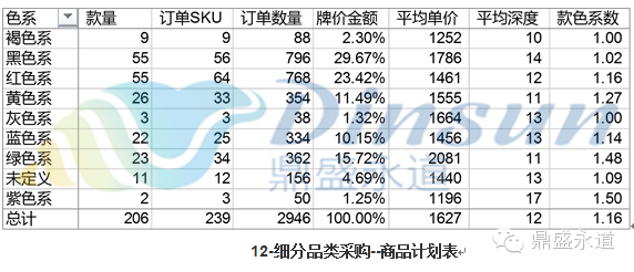 参考今年的细分品类的色系销售占比,依据销售部的反馈,采购部门确定每个颜色的SKU数量。