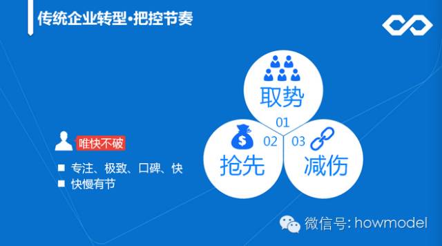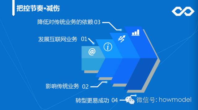 “传统企业转型的过程是一个阵痛的过程,传统业务会受到影响,传统渠道的经销商可能会联合竞争对手抵制。这时就需要快速将传统业务转移到互联网,转得越快,阵痛的时间越短。”