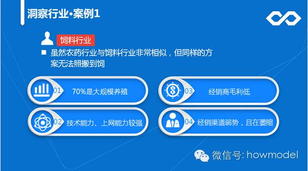 “但这个方法放到饲料行业就完全不行,因为饲料行业的情况是不同的。饲料行业的情况是70%已经大规模养殖,这些养殖的购买者本身有很强的技术能力和上网能力,导致经销商在饲料行业的毛利很低,而且竞销渠道的势力越来越弱,甚至逐渐枯萎。