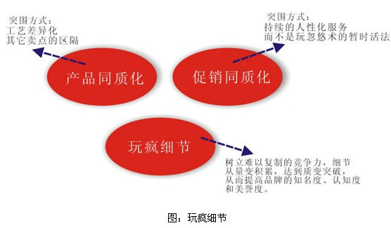 一叶知秋在于抓住矛盾的主要方面去做关键的细节,这才叫玩疯细节。玩疯细节的人只是少数人,他们比别人在细节上玩得专业,玩得成功,大多数人只会玩忽悠,这就是江山易改,本性难移,最终的强者,总是遵守了市场营销规则才能在商圈中胜出的。