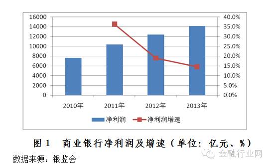 在经历了2010-2011年两年的快速增长之后,商业银行盈利增速自2012年开始整体回落。2013年商业银行盈利增速进一步放缓,净利润同比增长14.5%,增速较2012年下降4.5个百分点。2014年商业银行盈利增速预计会进一步的回落。