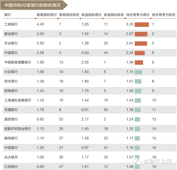 2014亚洲银行竞争力排名:中国内地40家银行排行榜
