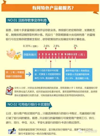鲜明特色。由于没有实体网点,也只提供标准化产品,所以直销银行将节省下的成本反馈给客户。