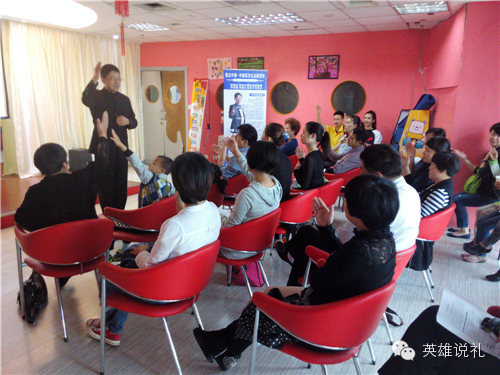 2014年10月11日,华英雄团队应邀来到位于人民广场附近的黄浦图书馆12楼的哈哈少儿,为在这里上课的孩子和家长们带来了一堂少儿国学礼仪课程。