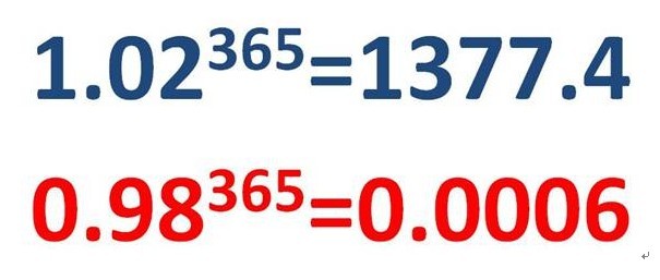 0.99=1-0.01,也就是说你每天退步一点点,你将在一年以后,远远小于“1”,远远被人抛在后面,将会是“1”事无成