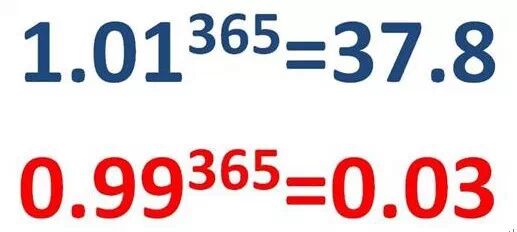 1.01的365次方也就是说你每天进步一点点,一年以后,你将进步很大,远远大于“1”