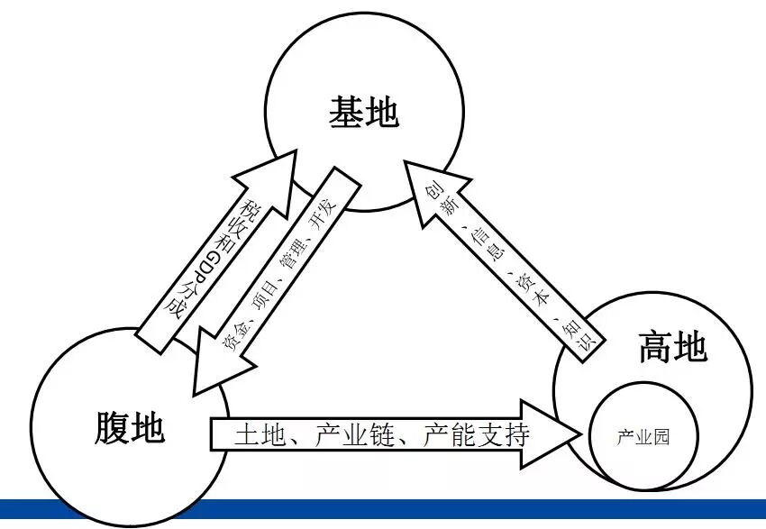 他还从中国区域性发展不平衡的角度阐述了相对落后地区如何透过产业园招商引资的新模式,并总结了“高地+基地+腹地”的“飞地”招商引资模式。