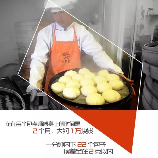 这套类似星巴克咖啡师的培训机制真要计算成本的话,花在每个包点师傅身上的时间是 2 个月,大约 1 万块钱。