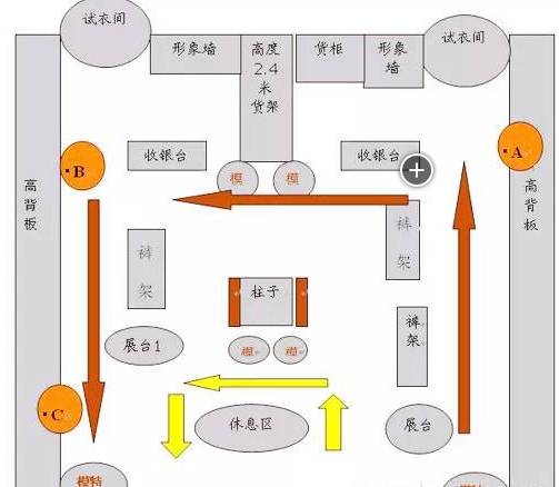 路线图当中一定要有些关键点,比如陈列的亮点,摆设、POP或画报等,一定要想办法让顾客在那边停留。