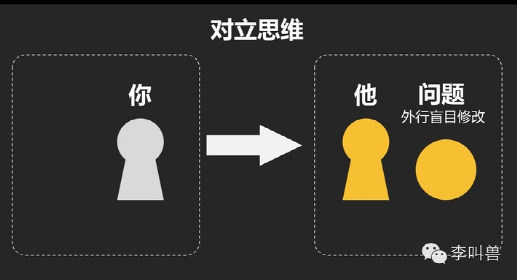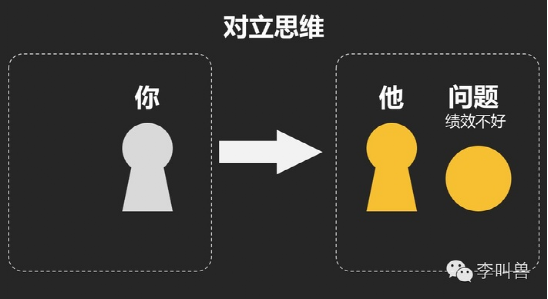比如员工绩效下降,没有斗志。对立思维的领导会说:“你最近各种没有效率,怎么搞的?你要打起精神来好好做!”这是把对方放在了自己的对立面,并没有共同解决问题。
