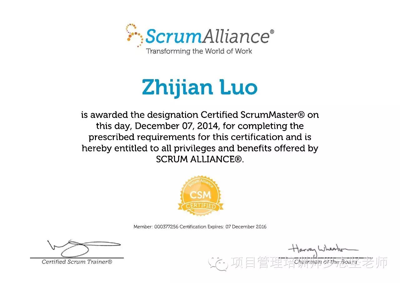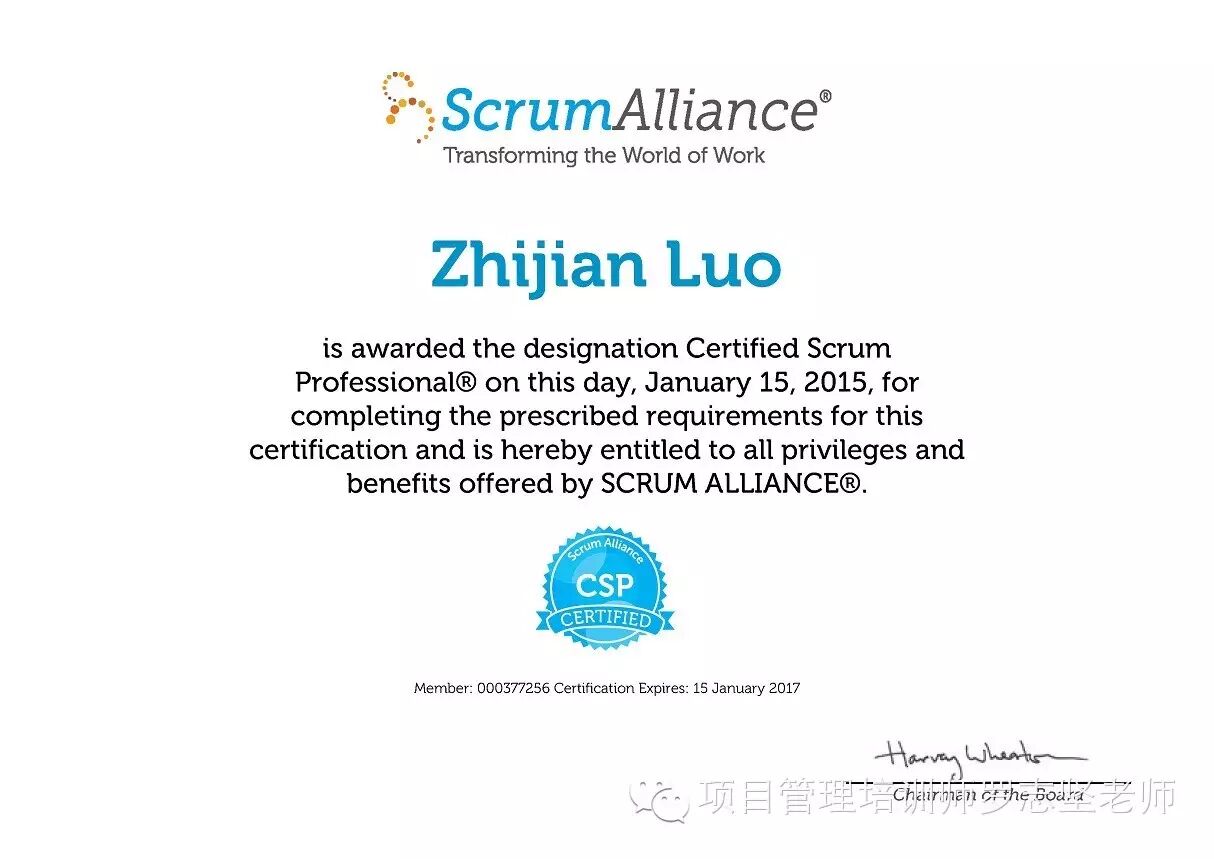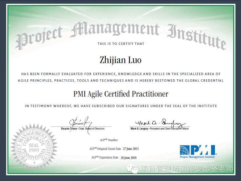 罗志坚:获得PMI-ACP(国际认证敏捷项目管理师)