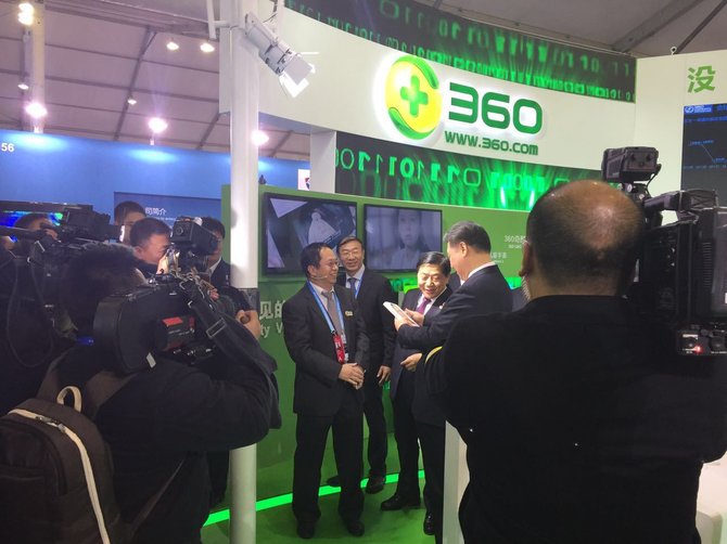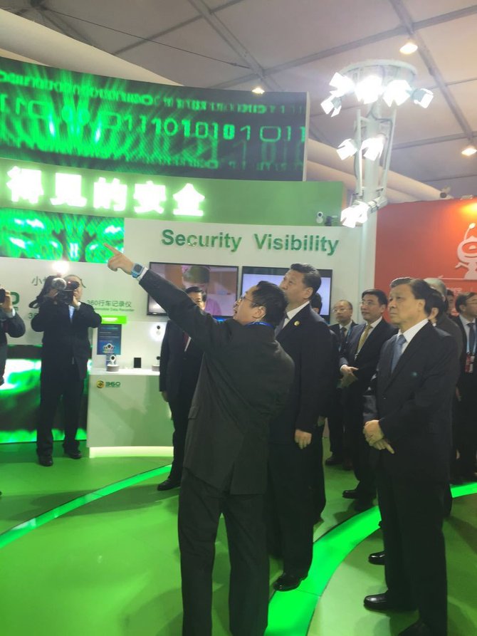 12月16日,乌镇世界互联网大会召开,当天下午国家主席习近平参观了互联网之光博览会展览会。中国最大互联网公司360的展位,吸引了习近平的注意。360公司董事长周鸿祎,客串了一回讲解员。老周会给习大大的讲什么呢?掏出360奇酷手机测个年龄?晒一下看护机器人?表演一把360儿童手表双向通话?都不是,老周秀的可是看家本领。