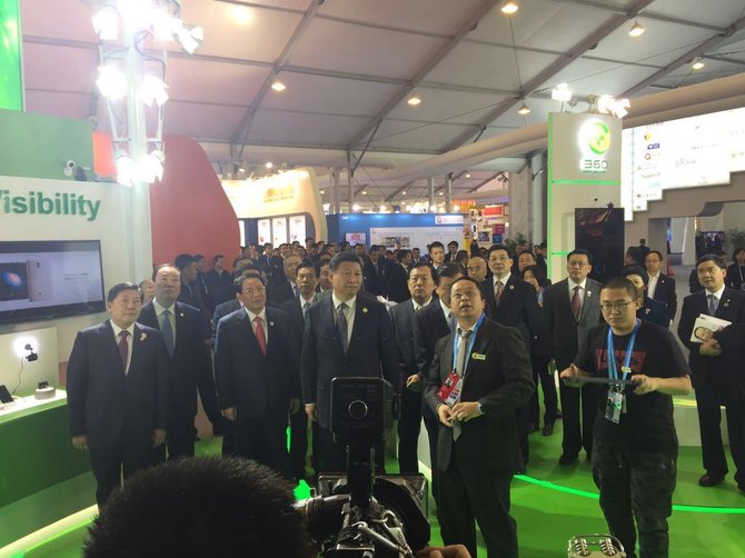 360公司CEO周鸿祎给国家主席习近平介绍360公司的“天眼”、“天网”系统
