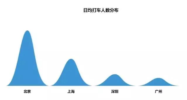 四个城市中,北京和上海人口数量相仿,但日均打车人数北京远远高于上海;深圳和广州人数差不多,打车人数深圳稍高于广州。北京城市过大,市中心到家的距离很远,紧张忙碌的城市中,分分秒秒都很可贵,这时候选择叫车回家最为方便。