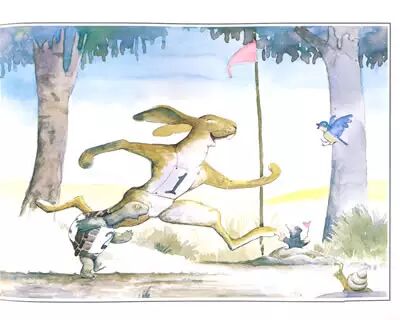 第一次,它们是在公路上比赛。结果兔子输了,为什么?因为兔子睡觉去了,乌龟先到达终点。