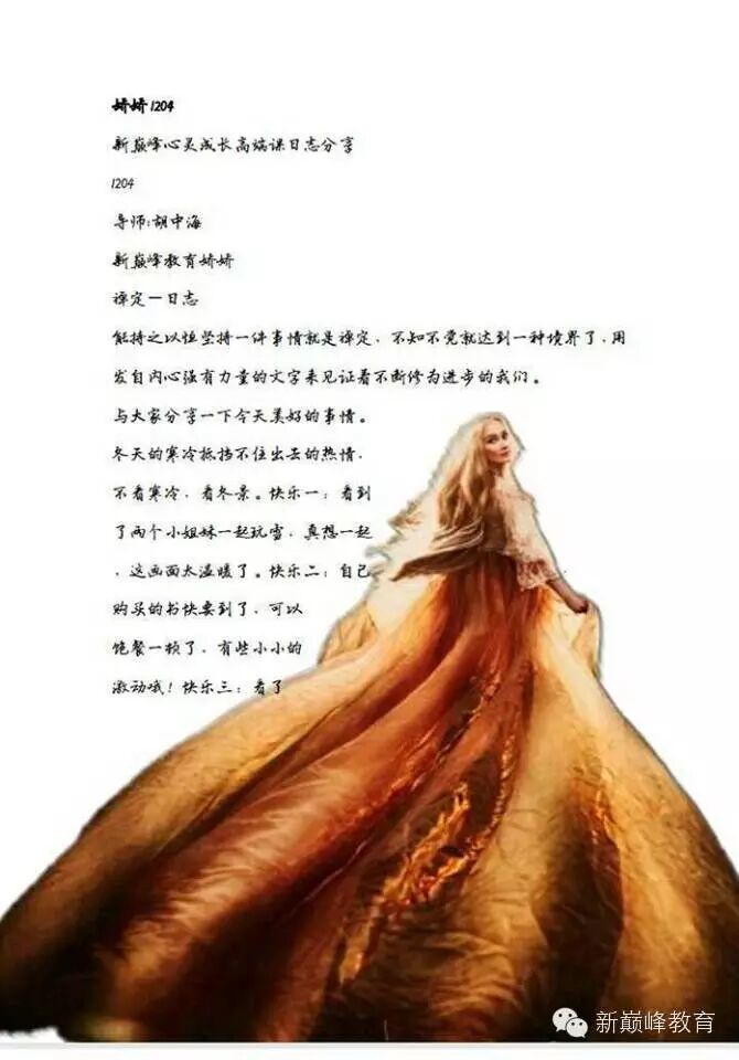 相爱是一种意念,会爱是一种能力,学会爱是大智慧,爱自己方能走的长远,我反复琢磨着胡老师的这些话,每次都给了我化解情绪的动力,看开,想开,放开,是啊,人生真的很快,我们每个人为何不在生活这个大舞台中畅游, 放慢自己的脚步,用一颗平和的心去从容的面对生活,慢慢体会生活这个大的艺术品,真的很美,这也是我这一年的真实体会 ,感谢新颠峰这个平台,感恩胡老师以及团队的老师们对我的鼓励,我做的不好,爱自己就好好的跟着老师学习吧!会爱自己才能学会爱别人。