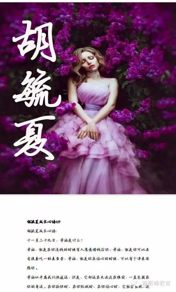 新巅峰教育致力于个人心灵成长,家庭教育,两性关系,家族兴旺系列工程,企业培训,私人订制家庭企业顾问咨询。在新巅峰教育不仅能感受事业带来的爱的意义,工作的充实和提升,更在心灵成长的道路和家族精神贵族的打造方面给予您非常大的帮助,心灵富足着,生命喜悦奇迹着,让我们共同走在爱的路上!