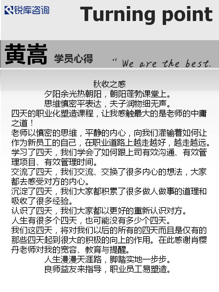 你还不知道锐库咨询新员工职业化塑造,那你就OUT了!