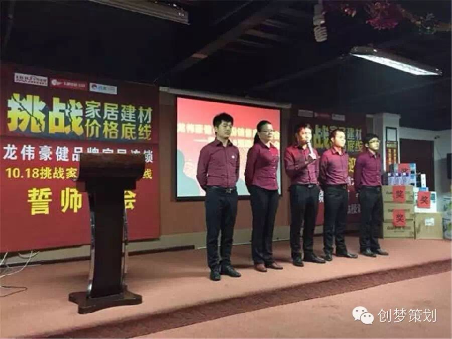 龙伟豪健品牌家居建材联盟10.18挑战价格底线活动誓师大会胜利开幕!此次活动将为广大石家庄顾客带来一场前所未有的超值购物盛宴,必将创造石家庄家居热卖神话!龙伟豪健品牌家居建材联盟10.18挑战价格底线活动由中山创梦营销机构全程策划、执行及落地,确保此次活动做到大动作、大投入、大力度、大优惠!最后让活动圆满成功!