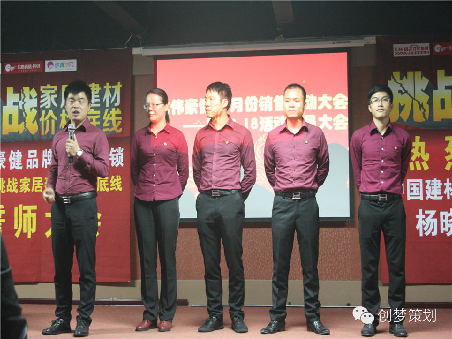 誓师大会现场,龙伟豪健品牌家居建材联盟团队展示: