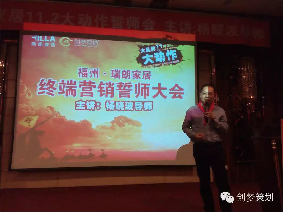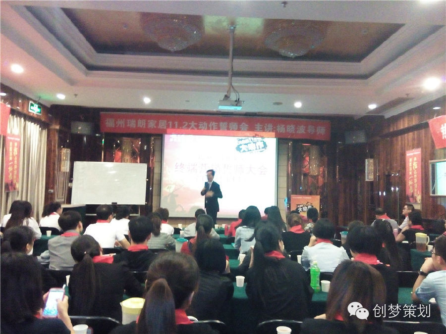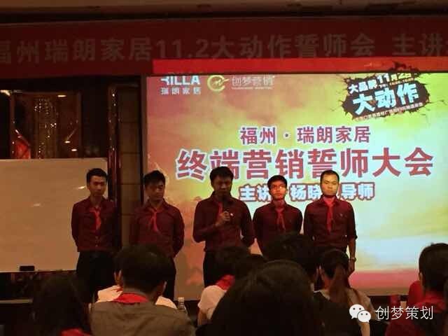 10月20日,福州瑞朗家居全体员工汇聚一堂,共同拉开瑞朗家居11月2日大动作“终端云营销誓师大会”大战序幕!瑞朗家居11月2日大动作活动特邀中山创梦营销机构创始人及掌舵人、中国建材家居终端云营销实战派专家、中国家具建材“终端云赢销”高级导师—杨晓波老师全程策划、指挥及督战!专业的创梦营销策划团队以及士气高涨的瑞朗家居全体人员,瑞朗家居11月2日大动作活动必定掀起福州家居热卖狂潮!