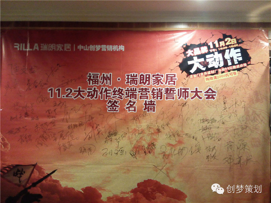 为了让瑞朗家居11.2大动作活动取得更好的成绩,各个团队签下军令状,为本次活动全力以赴。
