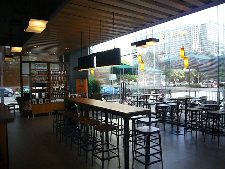 因此,一般的咖啡馆倾向于选择安静的地方,即使在热门地点也会选择角落位置。星巴克却偏爱商圈、写字楼、商场,通常会在显眼热闹的地方,甚至不避讳临街。热门地标是白领的典型领地,显眼的位置让他们不用花太多时间就能立即到达店内。